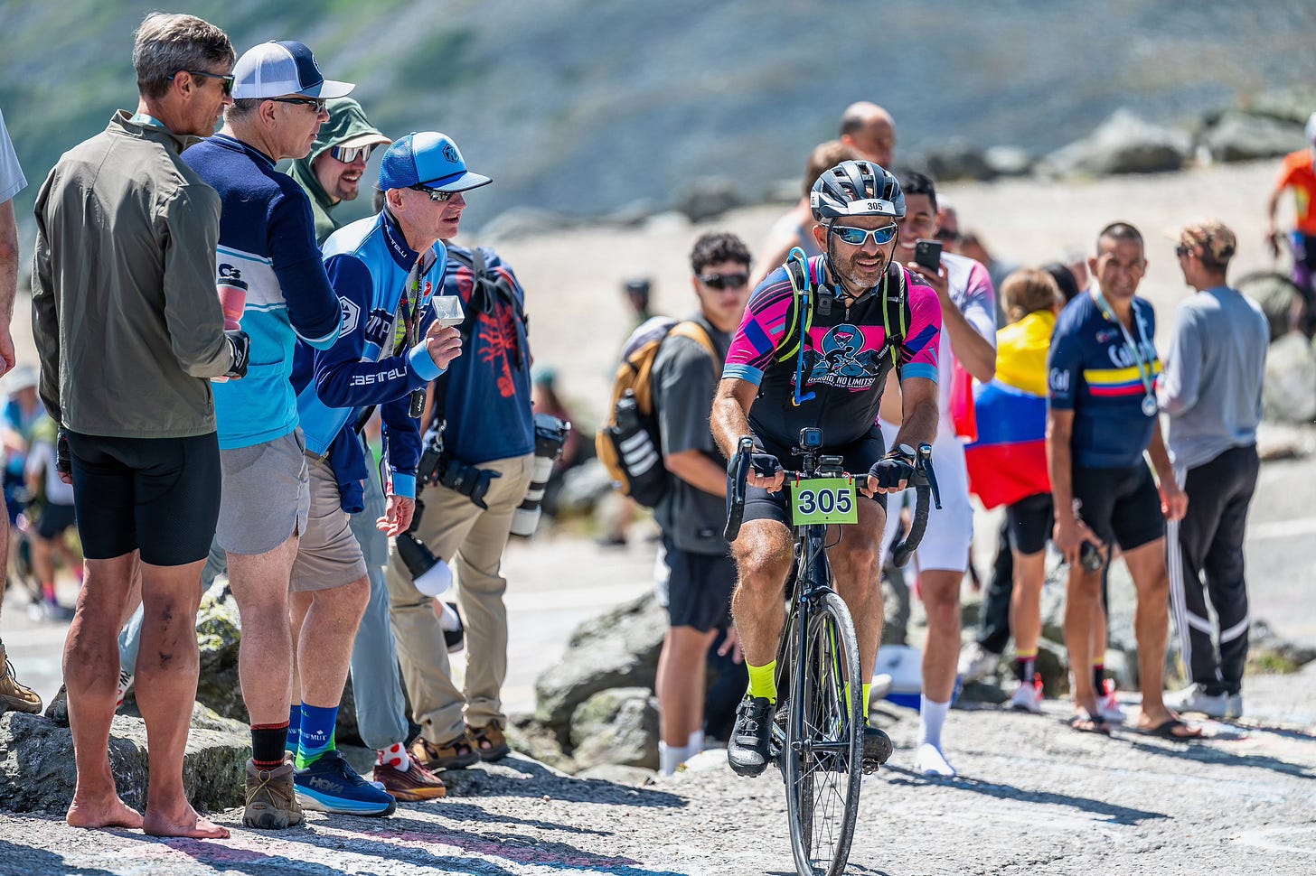 It took me 2:25 to get to the summit. I was actually on a 2:10 pace until about a mile to go when both my legs decided to cramp badly, which forced me to stop, refuel, and walk a bit. But I recovered enough to get back on the bike and do the final 22% grade climb (aka “The Wall”) to the finish line.